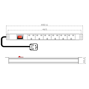 12 Way UK type PDU,19 Inch, Horizontal 2U,[1x16A FUSE PROTECTED, 250V VAC 50/60HZ MAX.POWER 3250VA, 3X1,5MM2 NYMHY 1,5MT CABLE, 3X16A IEC320 CEE NORM PLUG]